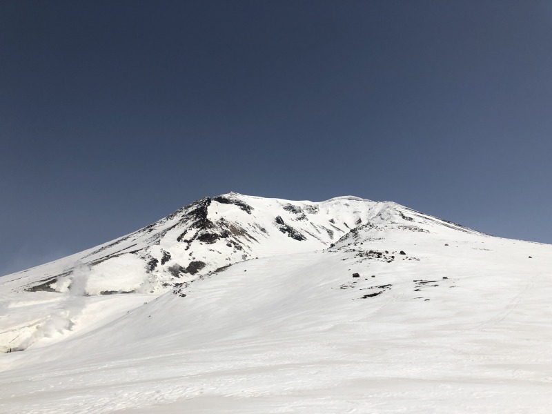 前方に見えるのが旭岳山頂、こんなに青空でピークまで見えることはそうそうありません!!札幌から3時間ちょっとですが、この天気で運転の疲れも吹っ飛んでます!!