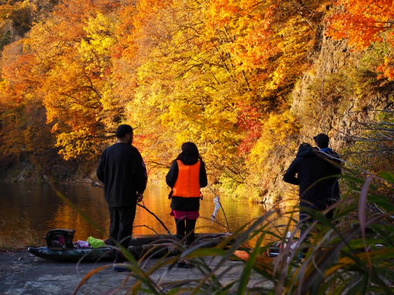 10月末でもまだまだSUP出来ますよ、この日はじめてSUP乗るお客様も一緒に行きましたが女性でも簡単に渓谷SUP出来てましたね。この手軽なのに、景色が壮大過ぎるギャップがハマる秘訣なのかもしれないです。普段のキャンプやアウトドアでは行けないような場所まできれいな景色を見ながら移動し、コーヒー飲んだり焼き芋したり釣りしたり、各々楽しんでサクッと片付けして次のフィールドへ(仕事だったり、飲みに行ったり・・)