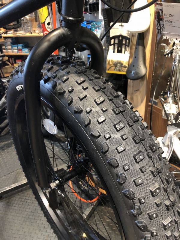 この冬かなり問い合わせが多くなっております、ファットバイク用ピンスパイクタイヤ