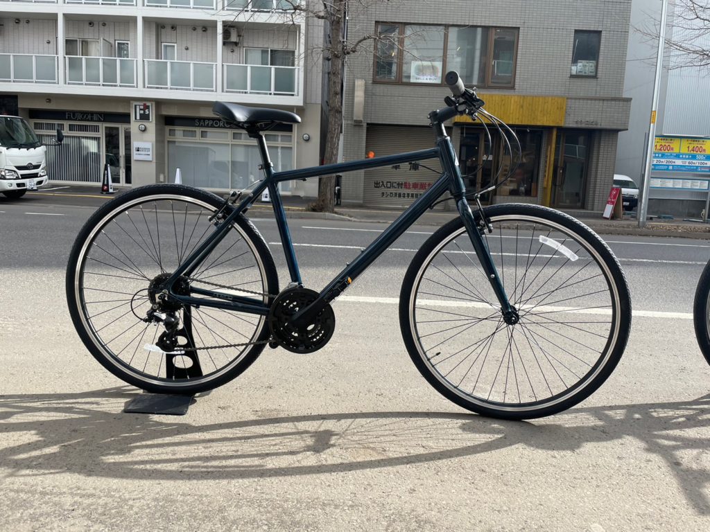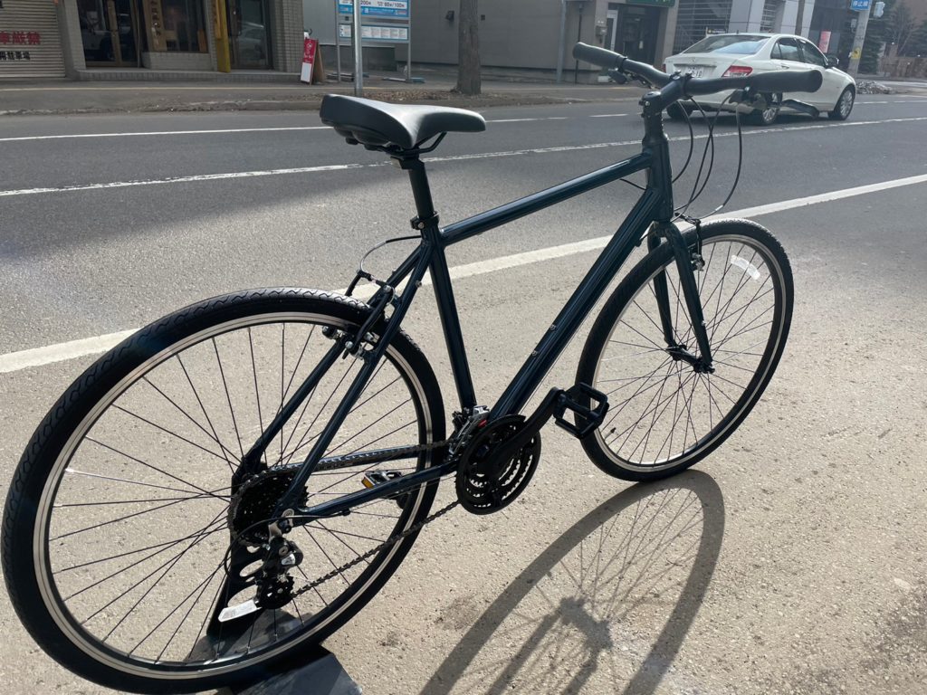 一般的なクロスバイクよりも太めのタイヤが特徴で、道の悪い北海道でも安心感があります!