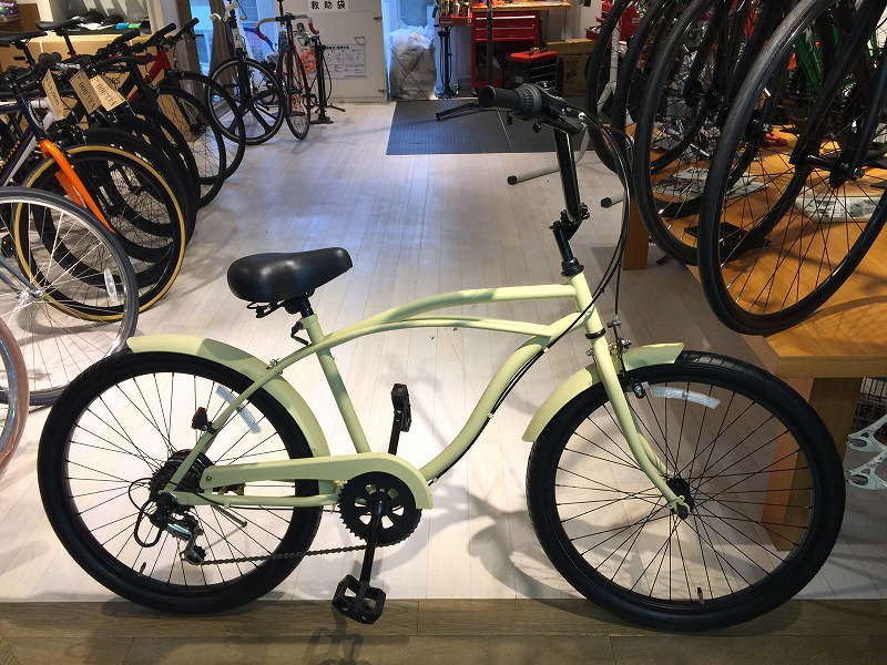 3枚目はたまに在庫する24インチのビーチクルーザー、よく見かける26インチに比べ一回り小さいので女性にはとてもおすすめです(男性が乗ってもカッコ良いです)